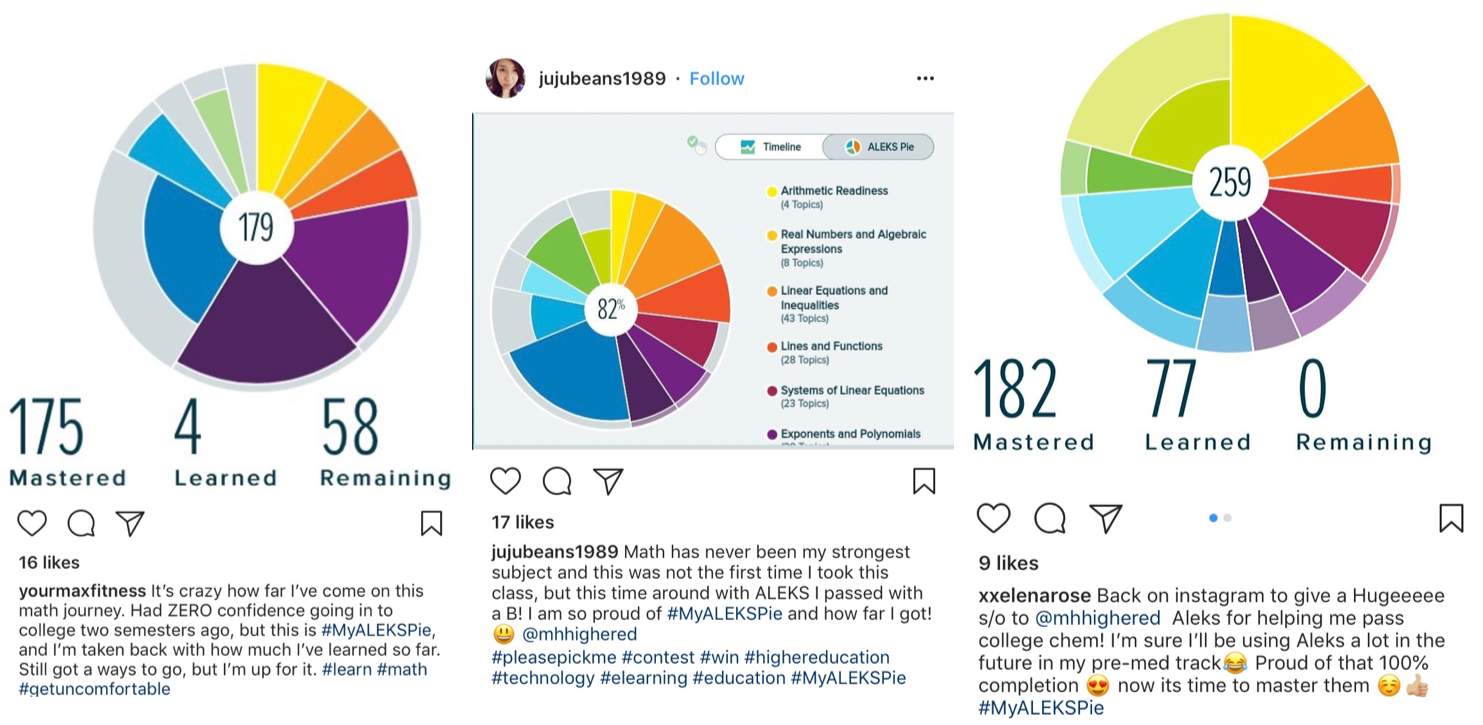 Share a photo of your ALEKS Pie on Instagram or Twitter, don't forget to tag @MHhighered and hashtag #MyALEKSPie. Be sure that your account is public!